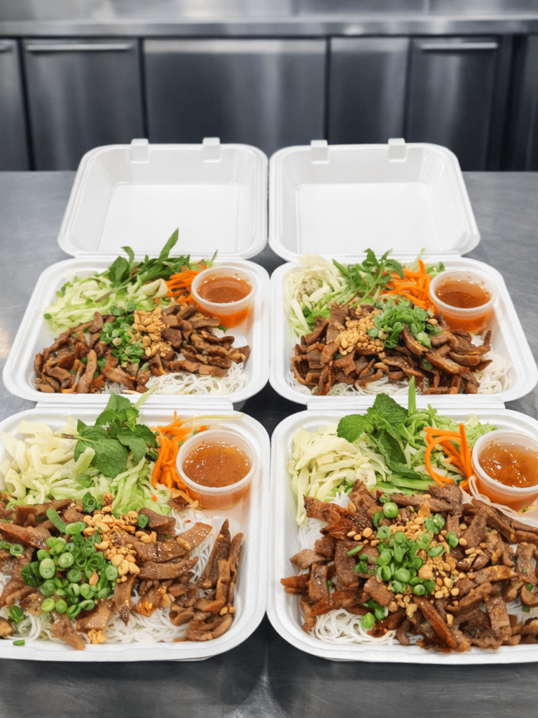 Call us for any trays, banh mi, shrimps fried rice, stir-fried,Noodle, fresh salad Vietnamese dishes.